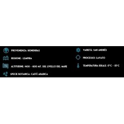 HONDURAS- San Andrés es un Café arábica intenso, estructurado y con cuerpo, con aromas que recuerdan a especias y frutas cítricas. Interesantes recuerdos a tabaco, caramelo y fina acidez. Destacan las notas licorosas con las dulces y aromáticas conservando un perfecto equilibrio.