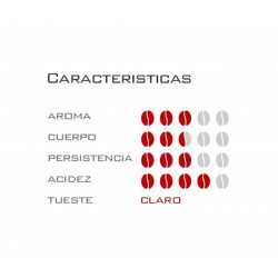 Mezcla de refinados cafés de calidad Arábica. Exalta sus características ácidas con matices afrutados y florales, y un delicado toque a cereales. Densidad perfecta, dulce y suave.